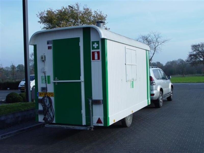 Onze schaftwagen open ruimte met toilet beschikt over een trekhaak zodat u de schaftwagen makkelijk naar uw locatie kunt meenemen.